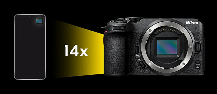 Chính giữa Nikon Z30 đặt cảm biến ảnh định dạng APS-C CMOS 20.8MP, hữu ích không chỉ quay phim và còn đáp ứng chụp ảnh tuyệt đẹp.